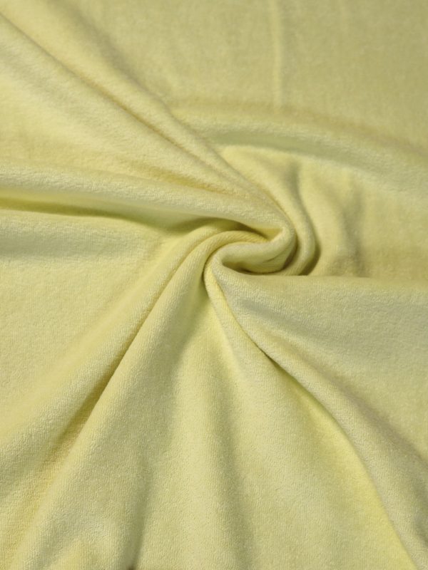 Plongez dans un nuage de confort avec notre tissu éponge jersey en teinte jaune safran. À la fois moelleux et souple, il est parfait pour coudre des vêtements tout doux : combi ultra confort, sorties de bain, sweats cocooning, petit ensemble rétro ou accessoires bébé.