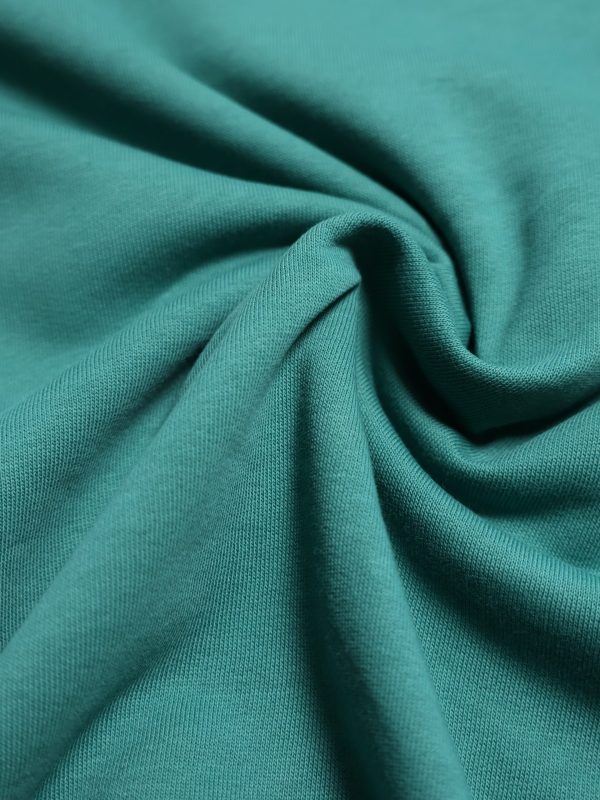Ce sweat bio vert émeraude est gratté à l’intérieur ce qui le rend très doux et agréable au contact de la peau.