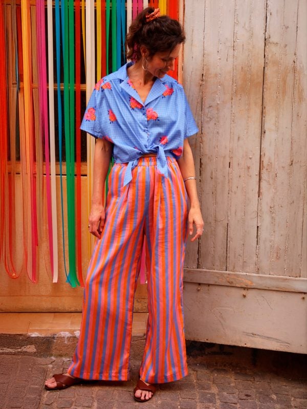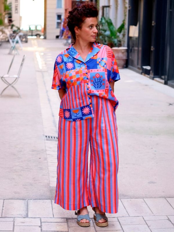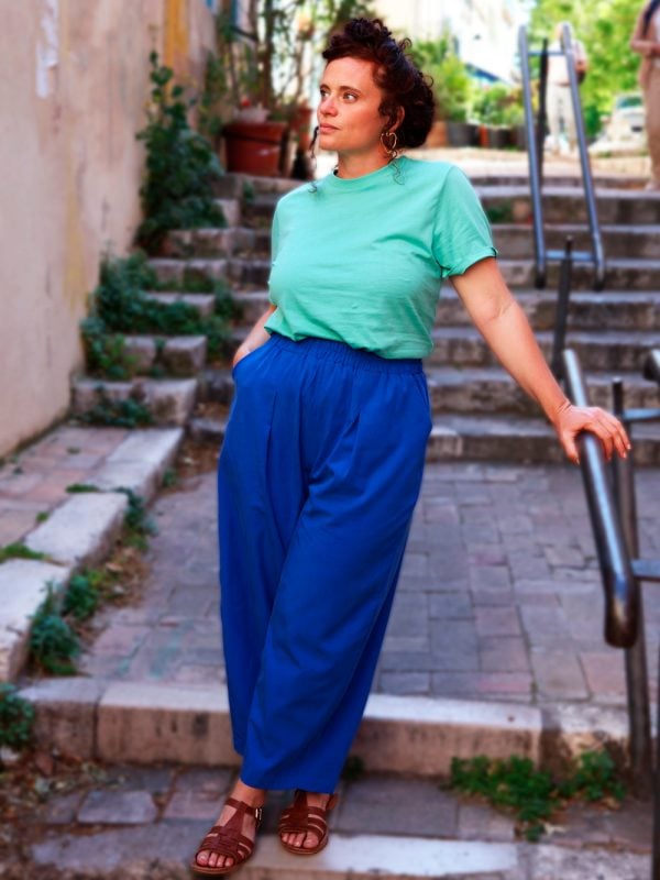 Avec sa ceinture entièrement élastiquée, Inti est un vrai bonheur à porter… et aussi à coudre ! Ce détail en fait un patron ultra accessible, même pour les débutant·es. Pas besoin d’être un pro de la braguette pour se lancer 😉