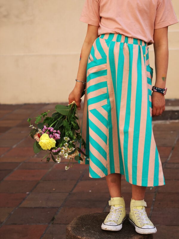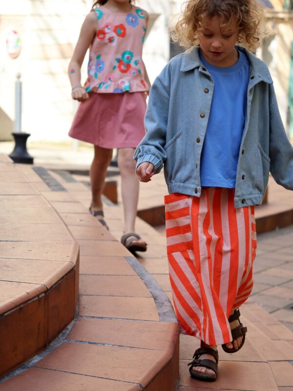 Origami est une jupe estivale modulable et très accessible, disponible pour la femme du 2XS au 4XL et pour les kids du 3 au 12 ans, idéale pour créer des looks assortis.
