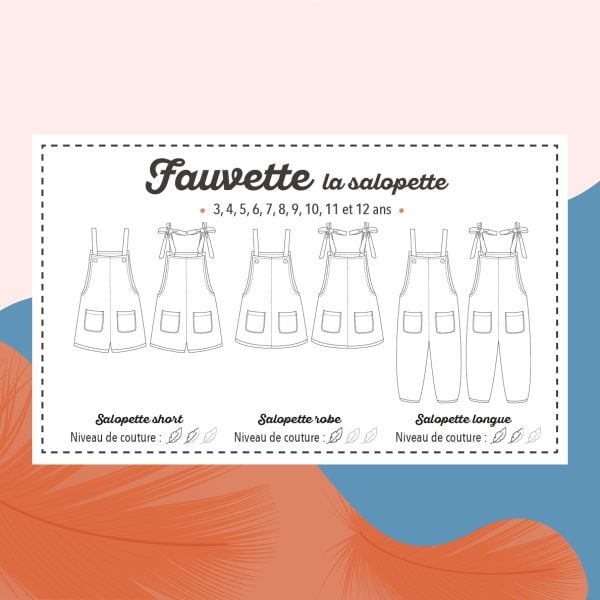 Fauvette est une salopette mixte légèrement oversize. Proposée en version longue, short à revers ou robe, elle est facile à coudre et très agréable à porter.