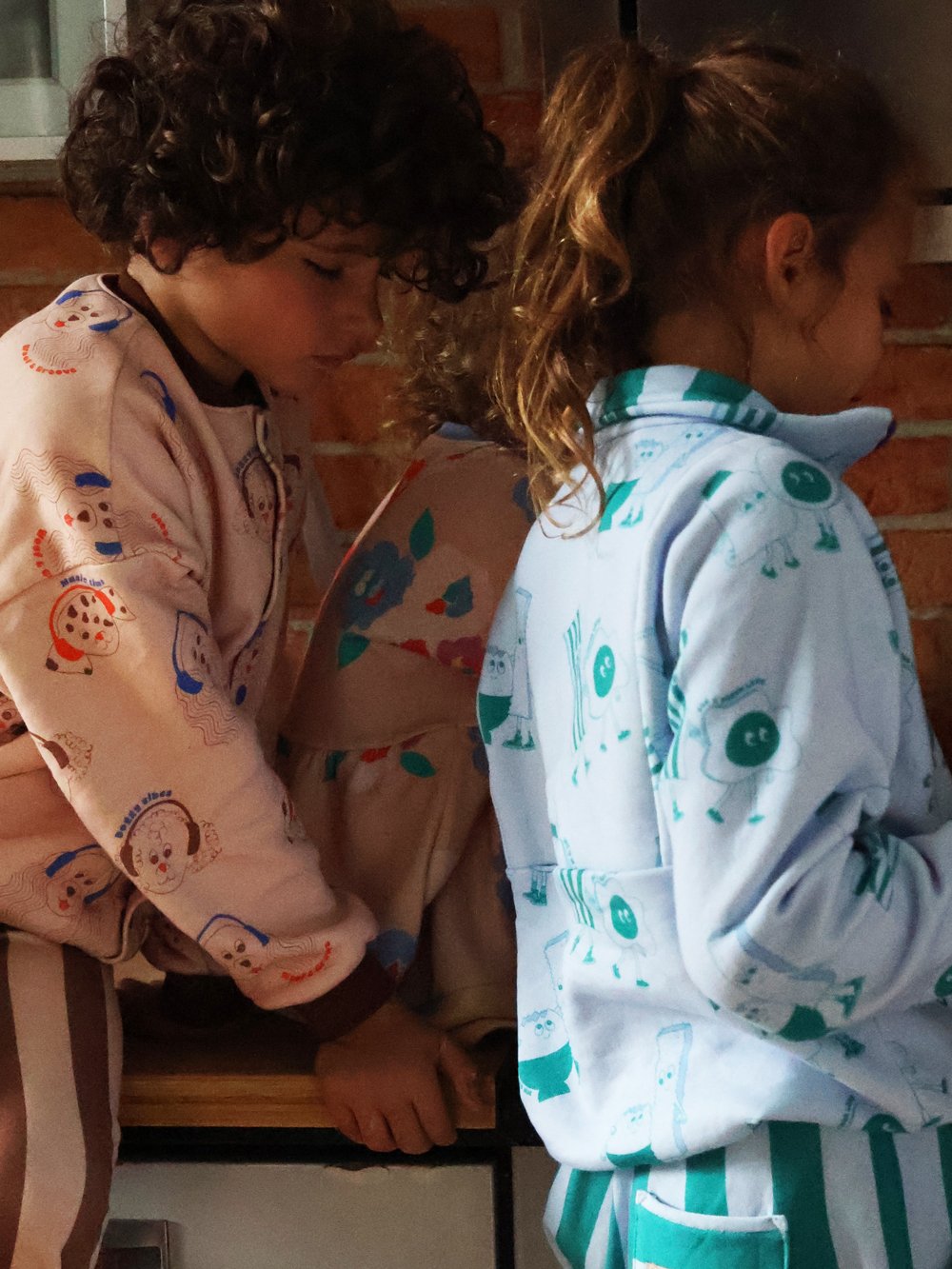 Enfants s'amusant et habillés avec les modèles réalisés sur la base des patrons de couture pour enfants Marmaï Patterns