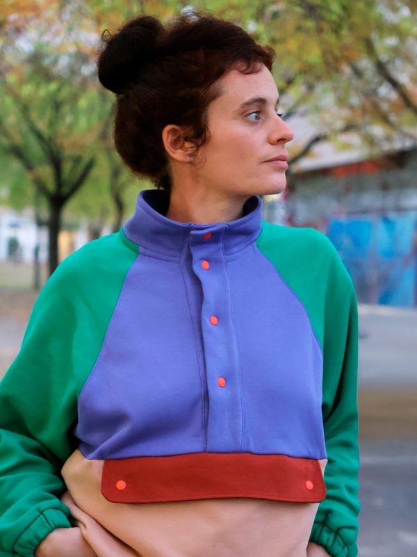 - Tissu sweat bio Mind the Maker coloris Jolly Green, Violet blue et Rose : doux, résistant et certifié, parfait pour un vêtement durable.