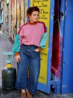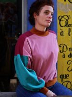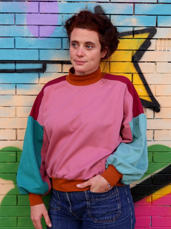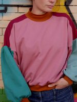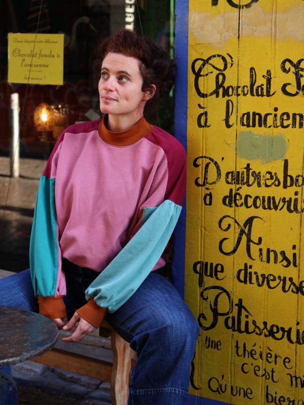 Twister est un patron de sweat offrant une multitude de possibilités. Les découpes devant/épaule, le col classique ou montant, les manches classiques ou droites… Il est possible de twister Twister à l’infini ! La version femme de Twister propose une coupe oversize, un col cheminée ou classique selon le look souhaité et une manche bouffante (optionnelle) à l’emmanchure très basse qui lui confère un look bohème chic très tendance.