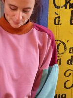 Dans votre Box Twister, vous trouverez toutes les fournitures qu’il vous faut pour réaliser votre sweat oversize version femme en color blocks avec votre patron Twister au format PDF.