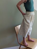 Pantalon 7/8ème, pantalon long, jupe-culotte ample, short taille haute ou salopette aux bretelles croisées, Coucou offre de nombreuses déclinaisons permettant de le coudre à chaque saison. Coucou est un patron accessible aux débutants grâce à notre livret pas-pas très détaillé et illustré en photos.